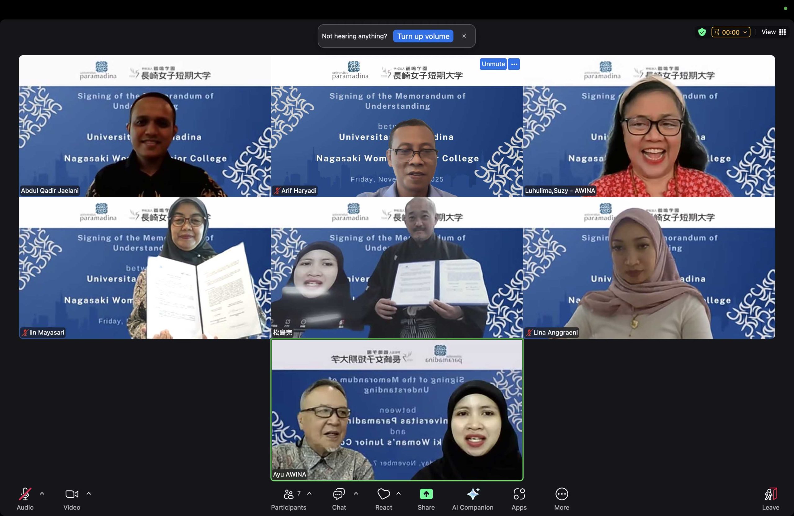 Jakarta, 7 November 2025 — Universitas Paramadina resmi menjalin kerja sama internasional dengan Nagasaki Woman’s Junior College, Jepang, melalui penandatanganan Memorandum of Understanding (MoU) yang dilakukan secara daring pada Jumat, 7 November 2025.