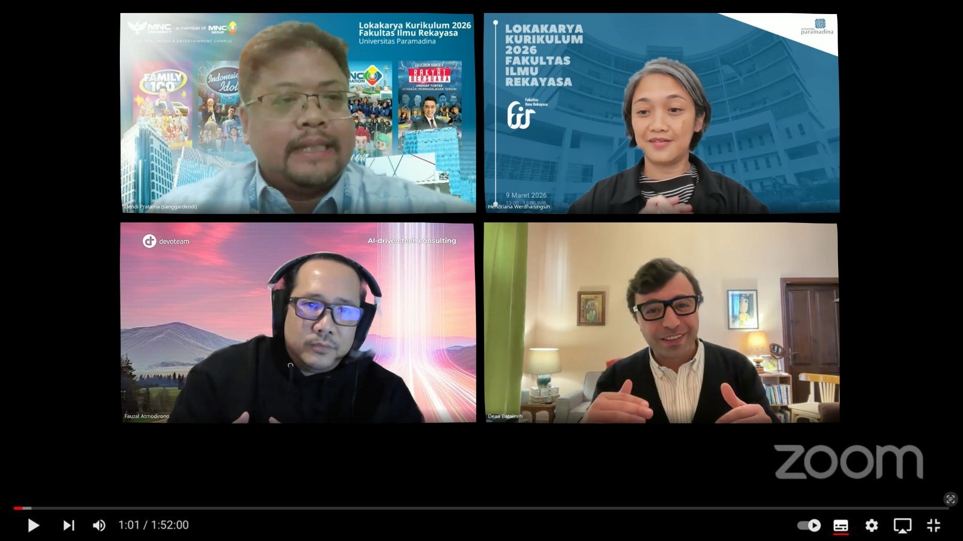 JAKARTA – Menanggapi pesatnya perkembangan teknologi Artificial Intelligence (AI) dan Internet of Things (IoT), Fakultas Ilmu Rekayasa (FIR) Universitas Paramadina resmi menginisiasi pembaruan Kurikulum 2026. Dalam lokakarya daring yang digelar Senin (9/3), kurikulum baru ini dirancang untuk mencetak lulusan yang tidak hanya mahir secara teknis, tetapi juga unggul dalam kolaborasi lintas disiplin dan pemikiran kritis.
