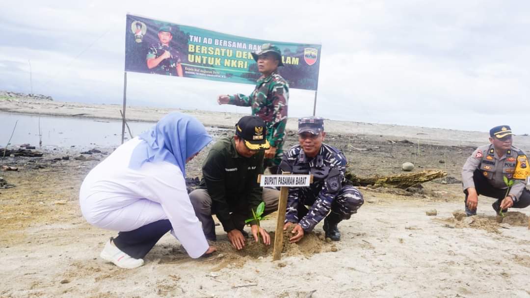 Lestarikan Lingkungan Sekitar Pantai, Wabup Risnawanto Bersama Forkopimda Tanam 340 Pohon Mangrove